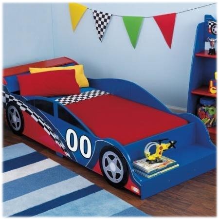 | 6 of 6 people found the following review helpful: = Fun: Amazon Verified Purchase This review is from: KidKraft Racecar Toddler Bed (Toy) We bought this for our grandson as he turned 2. It took less than an hour to assemble using very clear graphical directions. When he saw that it was finished he let out an ooooh!, climbed in with book and blanket and grinned from ear to ear. All the pieces fit together well. The paint was detailed. Even the screwheads were painted the same color as the pieces they were holding together! The wood seems solid. Very easy for him to climb in and out of. "Spoiler" on back of the car can hold stuffed buddies or small lamp. Front "bumper" also makes a convenient shelf. Crib mattress fit snugly, but loose enough to make the bed easily. Certainly seems sturdier than the plastic toddler beds we looked at and priced very reasonably. 6 of 6 people found the following review helpful: By cinnamongirl1110 "Cinnamongirl1110" (Allentown, PA) - See all my reviews = Durability: Amazon Verified Purchase This review is from: KidKraft Racecar Toddler Bed (Toy) We purchased this bed for my 2 1/2 year old. I was a little apprehensive since there were no reviews. But it looked and sounded sturdy from the description. The bed arrived a day early which was a pleasant surprise. The bed is so well built and very sturdy. There were not many pieces as much of the bed is already constructed, you basically had to just put all four sides, the front and back in place. The attention to detail was impressive. The ends of each screw matched the color of the piece. The paint is very vibrant and not dull or cheap at all. For $160.00 this is an excellent purchase for a toddler bed. Our crib mattress fit perfectly! My son was extremely thrilled as he is already a car fanatic. If your looking for something that isnt plastic or overly expensive, consider this bed. I am beyond impressed. Build time was about 30 min. Very easy to put together. 1 of 1 people found the following review helpful: By = Durability: Amazon Verified Purchase This review is from: KidKraft Racecar Toddler Bed (Toy) My 2.5 year old LOVES his new bed!! The bed is very easy to put together (took my husband and I maybe 45 minutes). The instructions are great and the bed feels incredibly sturdy. This will last a while I'm sure! No complaints whatsoever from me or my little guy!! |