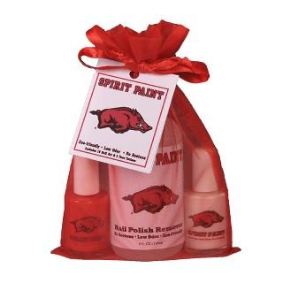 This gift set includes officially licensed Arkansas red and white polish, remover and a sticker sheet for nail art and face decorating.